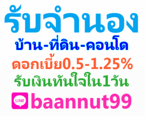 รับจำนอง รับขายฝาก รับไถ่ถอนโฉนดบ้าน ที่ดิน อาคาร นายทุนรับเองโดยตรง บ้านณัฐ99
